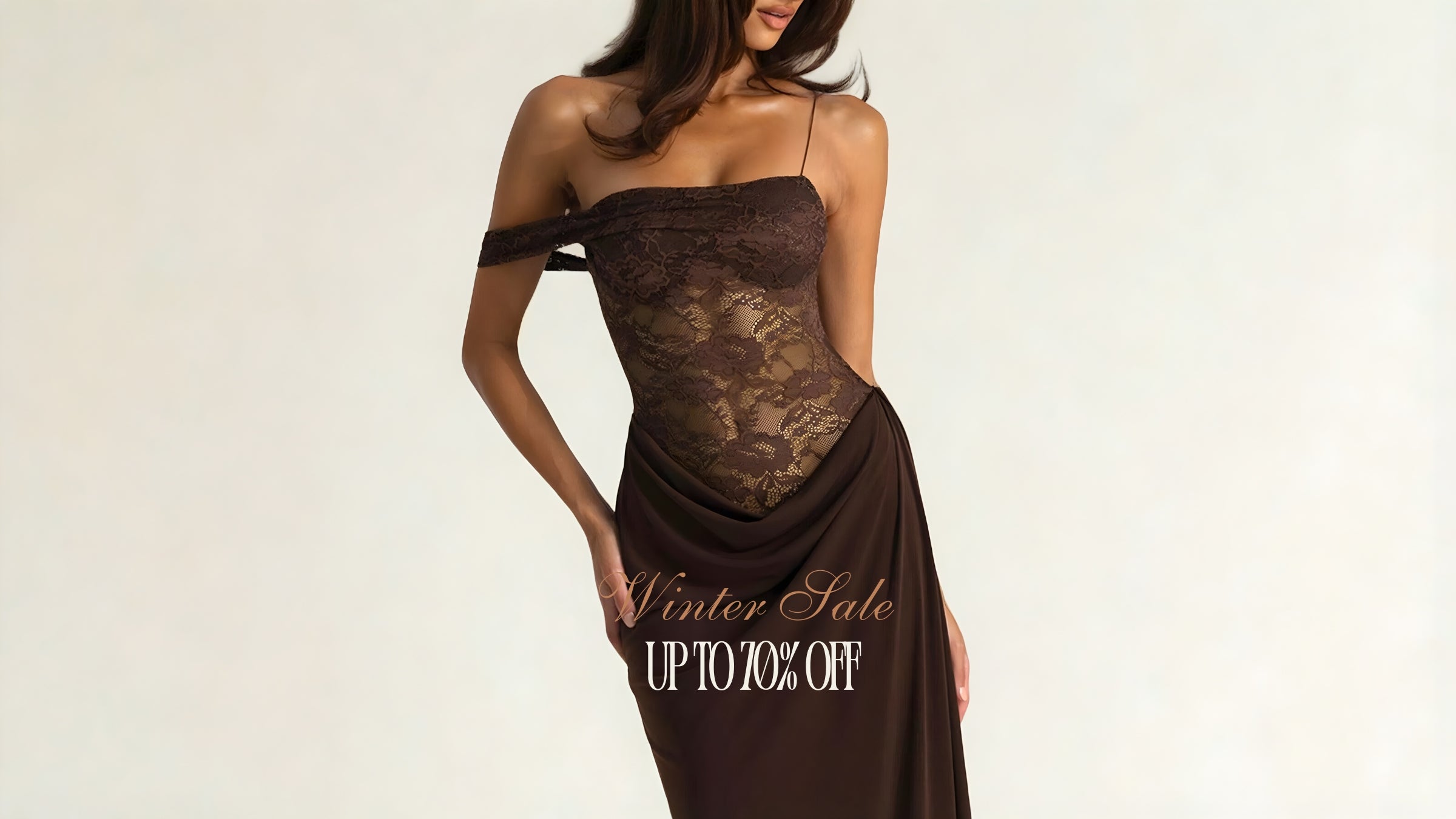 Blushe Belle Woman in a pink dress standing in a sunlit room with promotional text overlay.
